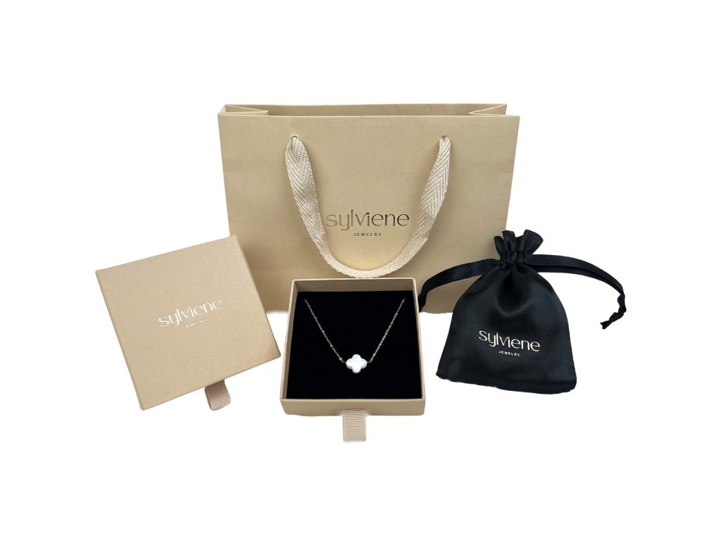 Nechte balení na nás! Zabalíme tebou vybranou třpytivou radost do našeho luxusního dárkové balení Sylviene Beige. Dárkové balení obsahuje: hnědou šuplíkovou krabičku, černý semišový pytlík a béžovou dárkovou tašku.