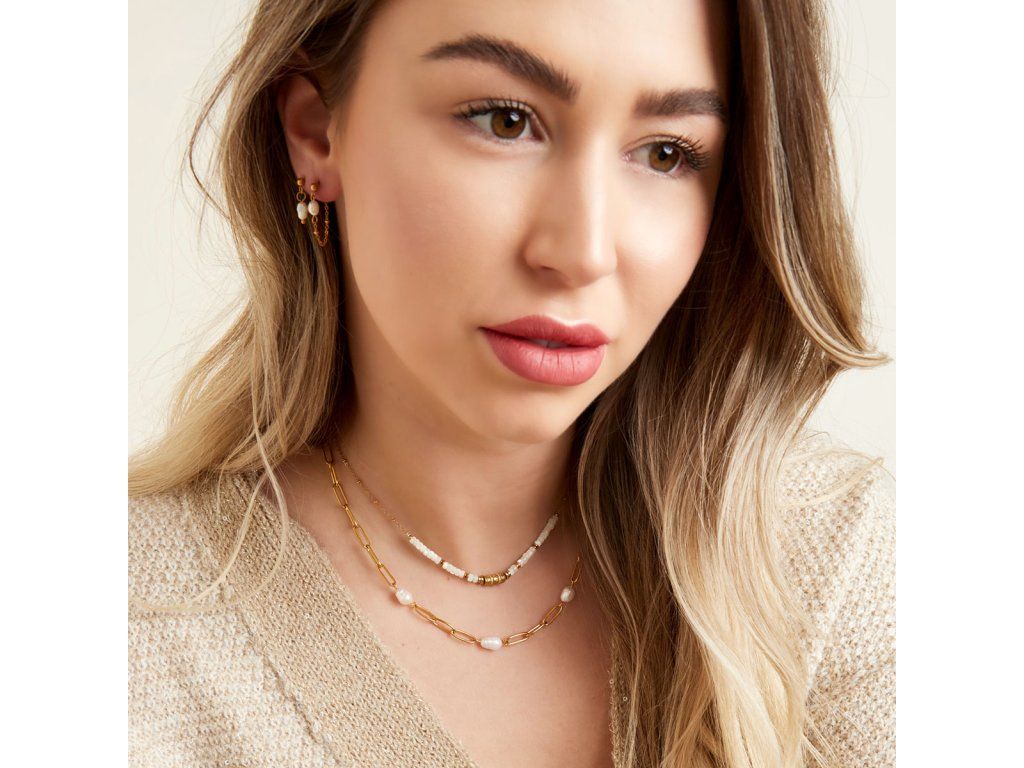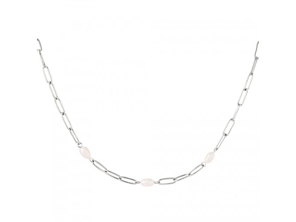 Náhrdelník AUDREY z chirurgické oceli doplněný třemi třemi sladkovodními perlami.