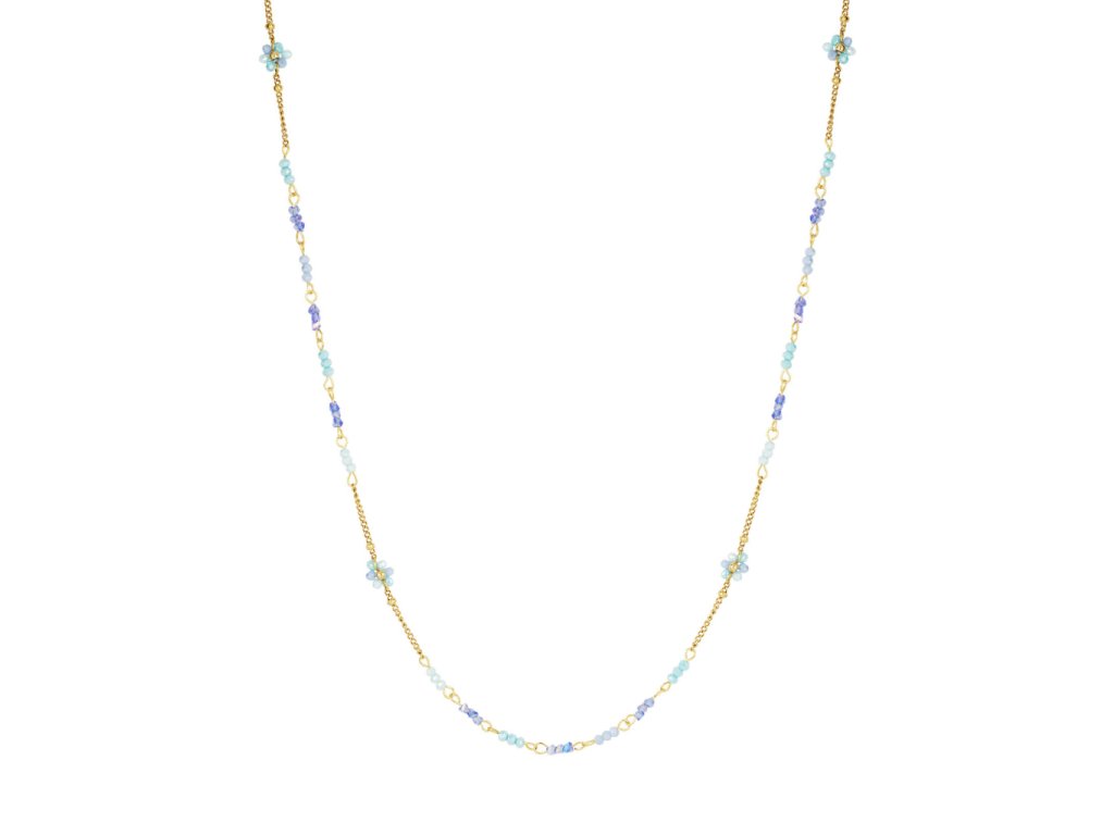 Udělej si radost tímto krásným náhrdelníkem BLOOM, který je z pozlacené chirurgické oceli a skleněných korálků. Náhrdelník s květinkami je skvělým doplňkem outfitu během letních dní. Délka náhrdelníku je 95 + 5 cm.