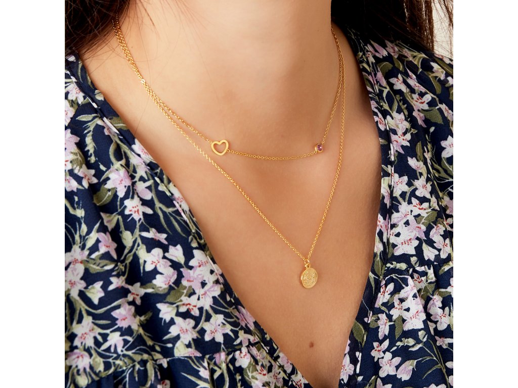 - Krásný Birthstone náhrdelník s kamenem třpytivého kubického Zirkonu v barvě měsíce narození a srdíčkem.