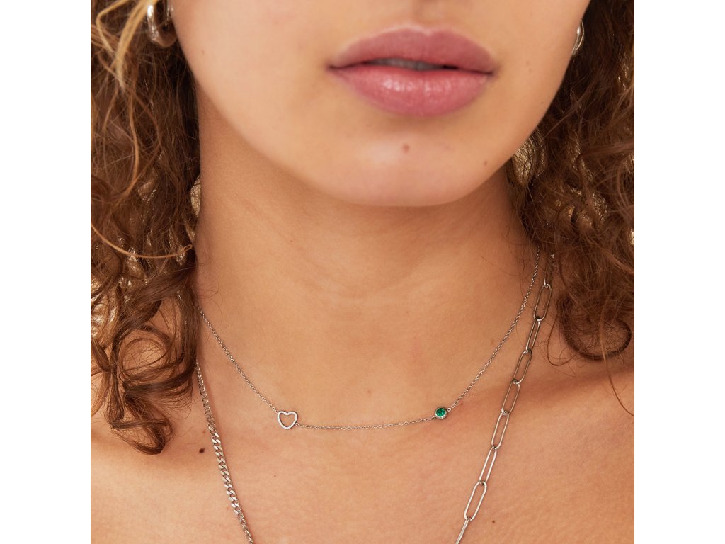 - Krásný Birthstone náhrdelník s kamenem třpytivého kubického Zirkonu v barvě měsíce narození a srdíčkem.