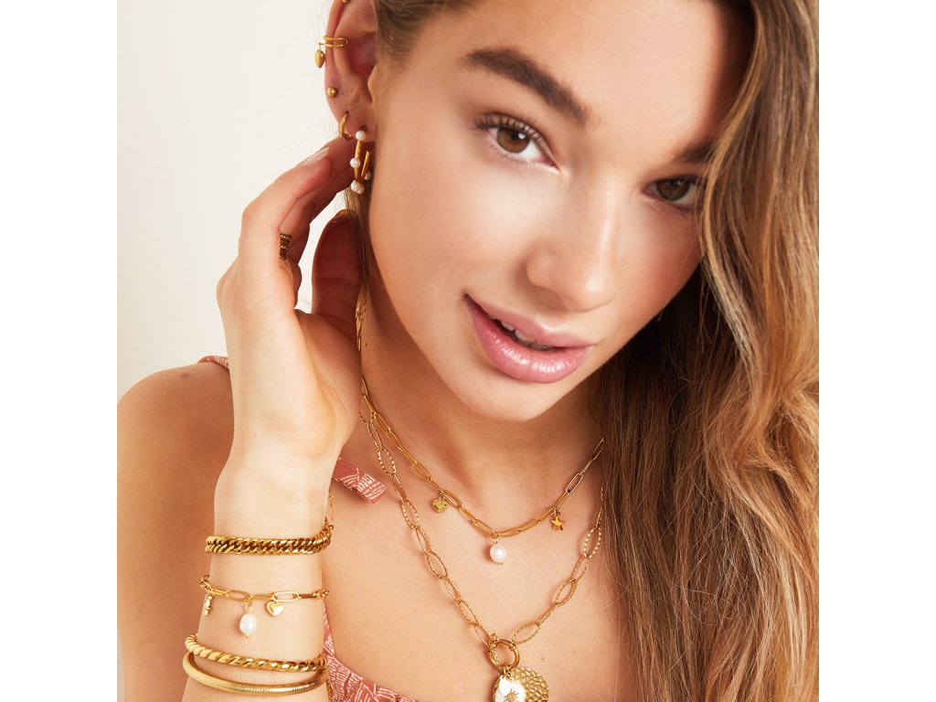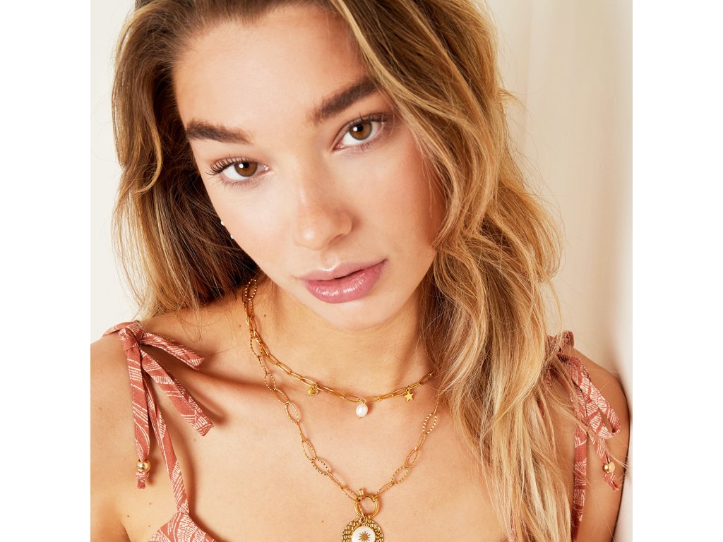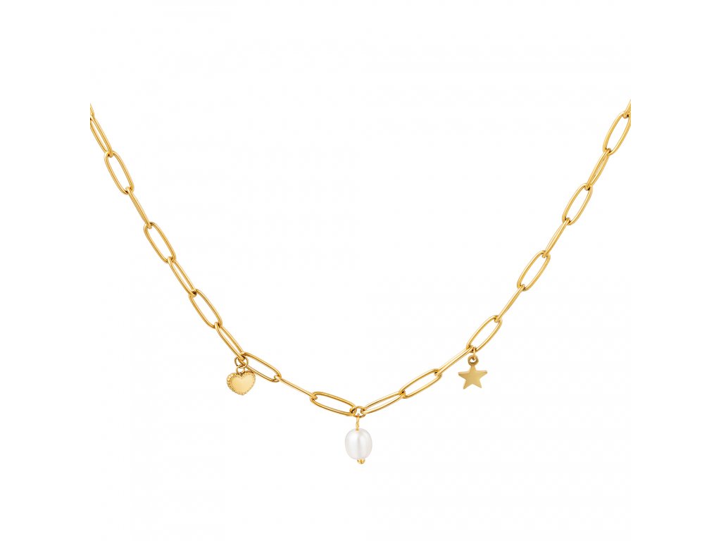 Náhrdelník DOMINIQUE z pozlacené chirurgické oceli, dvěma přívěsky- hvězdička a srdíčko a sladkovodní perla.