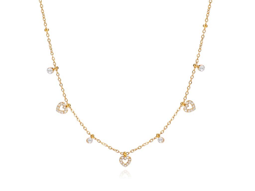 - Třpytivý náhrdelník HEARTS zdobený přívěsky ve tvaru srdce a krásnými Zirkony, dodá tvému dekoltu ten správný look.