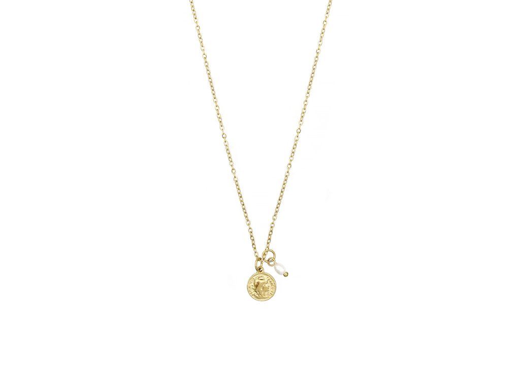 Náhrdelník Little Coin & Pearl Gold - ozdobený medailonkem a perličkou
