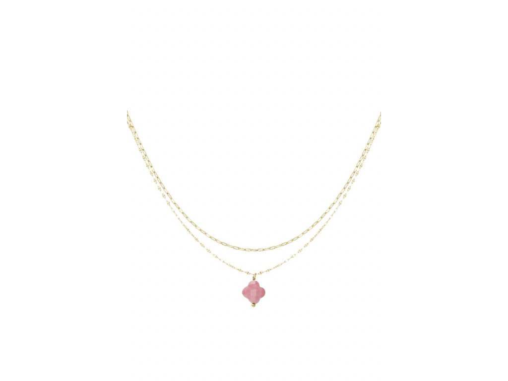 - Delší řetízek je zdobený přívěskem ve tvaru čtyřlístku, který je z přírodního kamene Rodochrozit.
