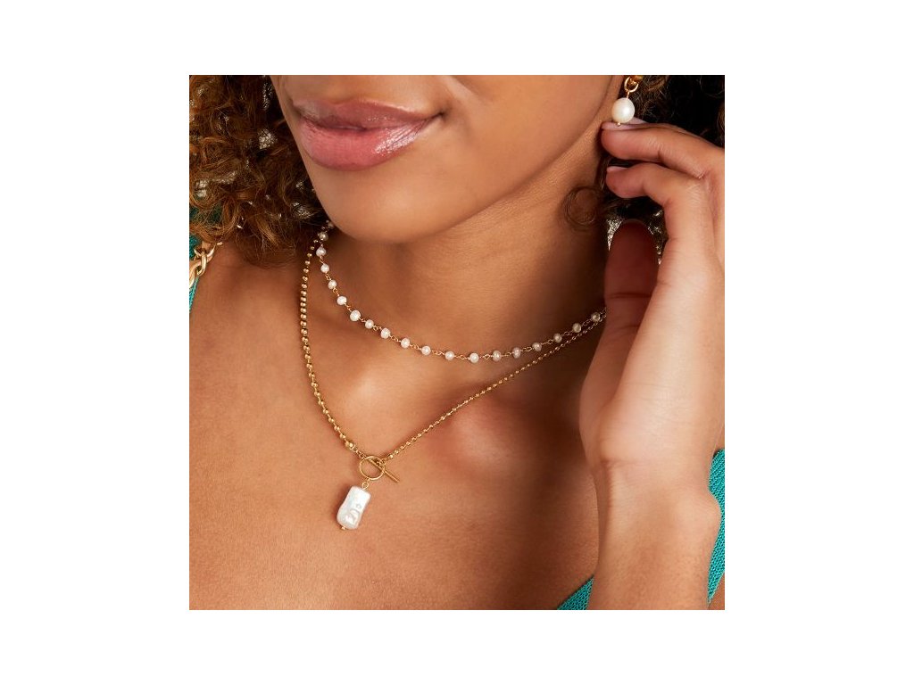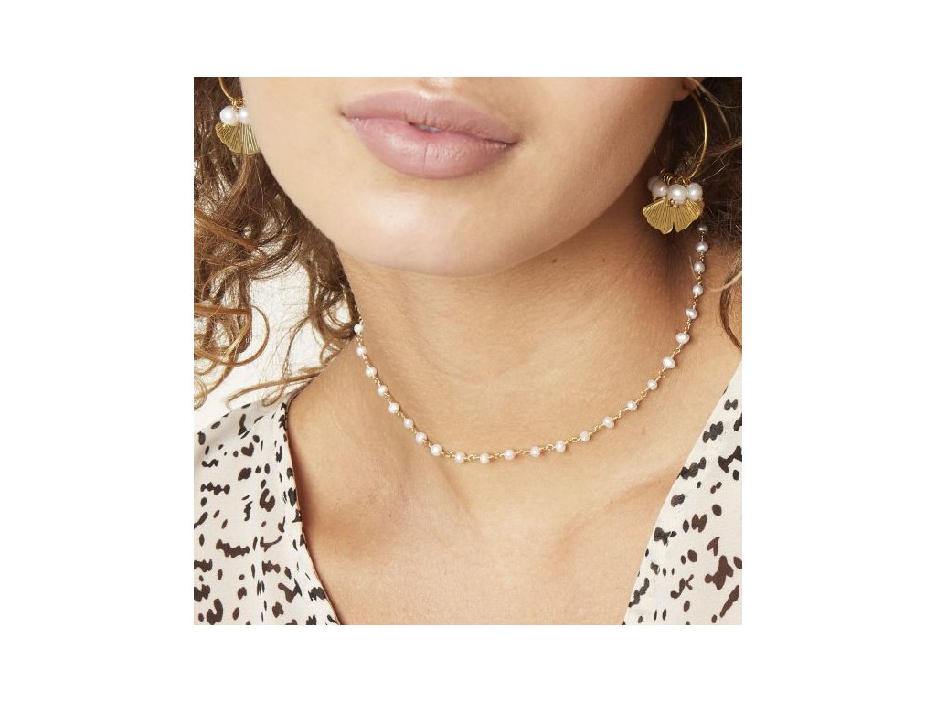 Kouzelný náhrdelník z pozlaceného kovu ozdobený spoustou krásných pravých sladkovodních perliček po celém obvodu náhrdelníku.