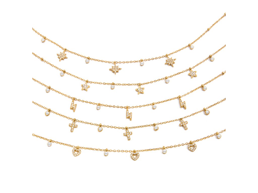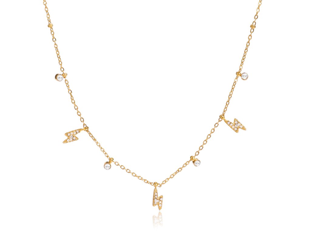 Třpytivý náhrdelník STORMI zdobený přívěsky ve tvaru blesku a krásnými Zirkony, dodá tvému dekoltu ten správný look. Využít jej můžeš na běžné nošení do práce, školy či při speciálních příležitostech. Originální šperk, který podtrhne tvou přirozenou krásu - ve dne i v noci. Udělej si radost tímto stylovým kouskem!