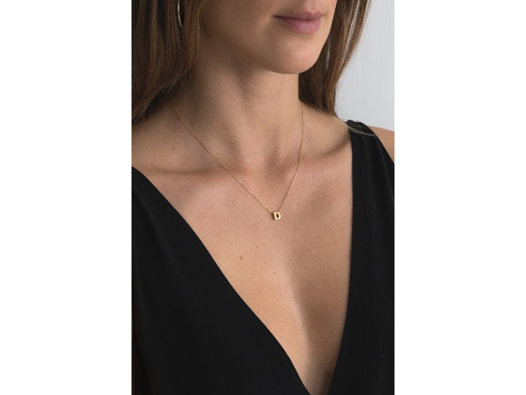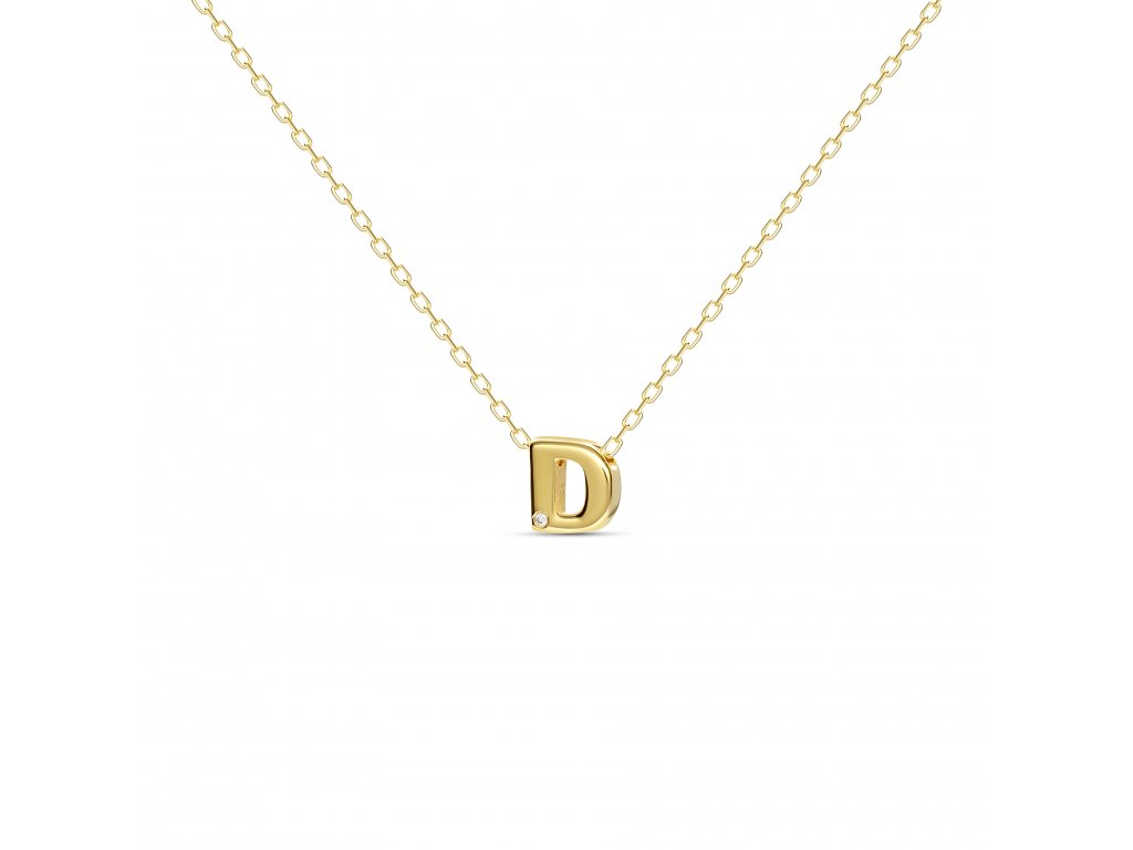 Pozlacený náhrdelník Letter "D" s diamantem Ag 925/1000