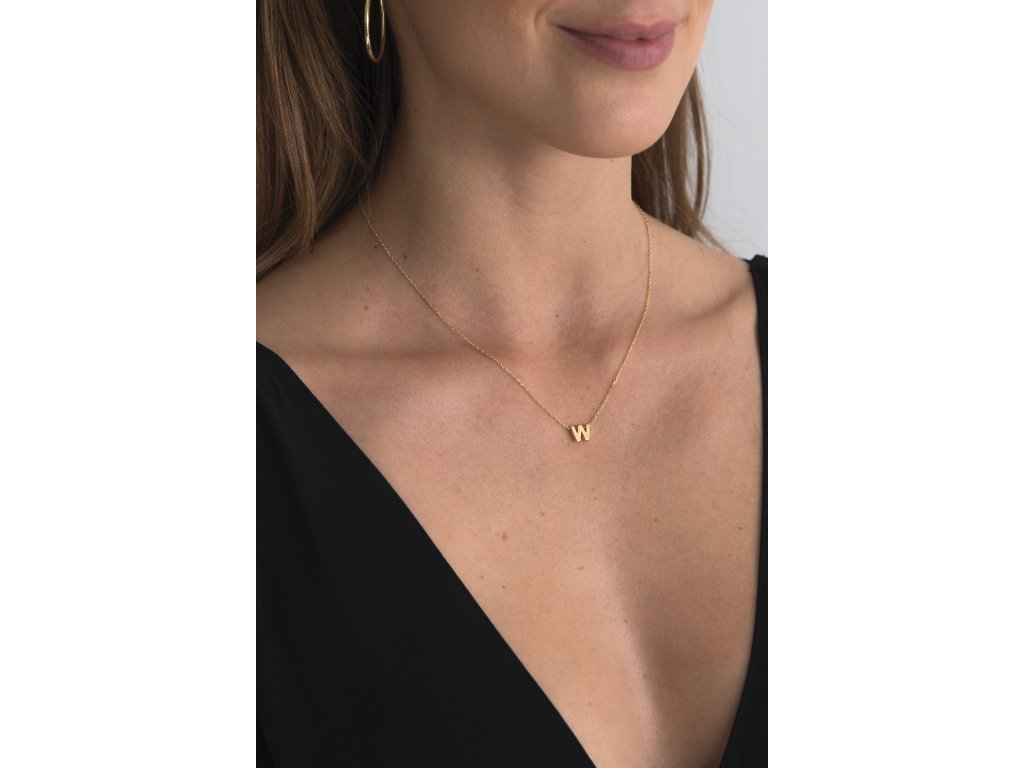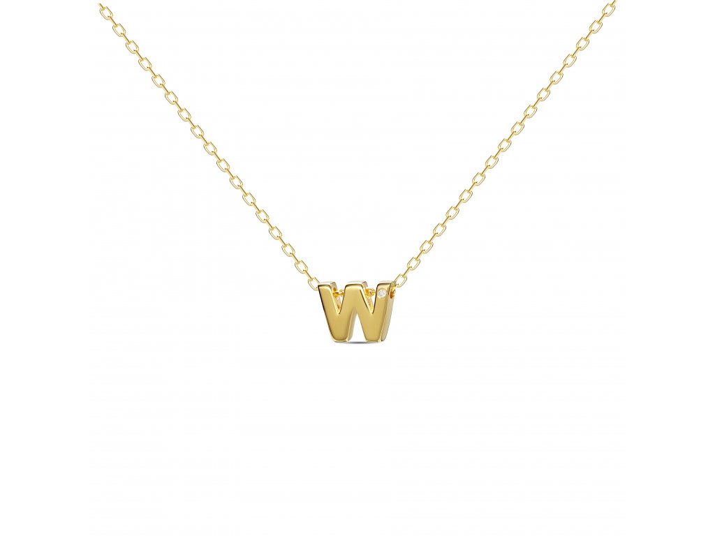 Pozlacený náhrdelník Letter "W" s diamantem Ag 925/1000