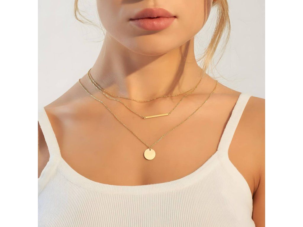Okamžitě pozvedne každý outfit. Kombinace jemných řetízků s minimalistickým přívěskem a elegantní tyčinkou vytváří moderní vrstvený look.