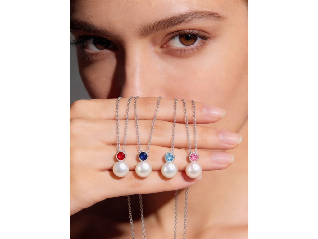 - Stříbrný náhrdelník Birthstone je zdobený sladkovodní perličkou a kamínkem Zirkonu v barvě měsíce narození.