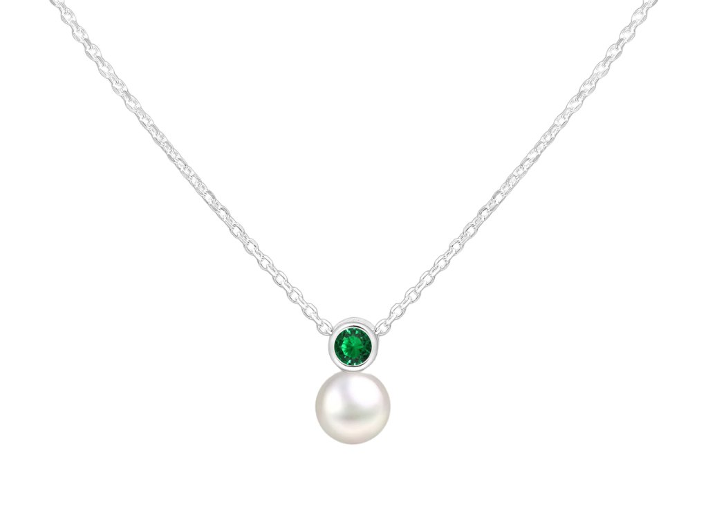 Stříbrný náhrdelník Birthstone s perličkou Květen - Emerald Ag 925/1000
