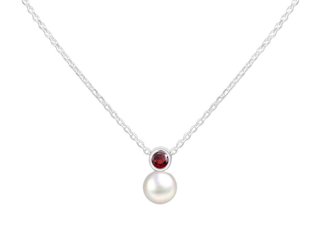 Stříbrný náhrdelník Birthstone s perličkou Leden - Granát Ag 925/1000
