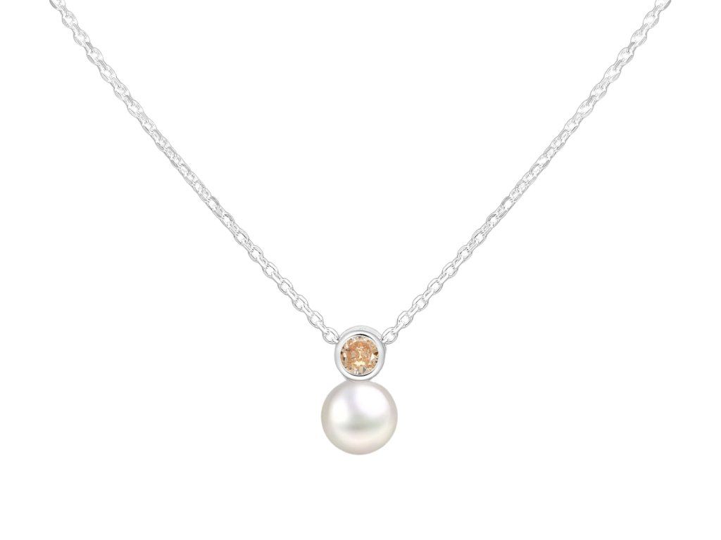 Stříbrný náhrdelník Birthstone s perličkou Listopad Ag 925/1000