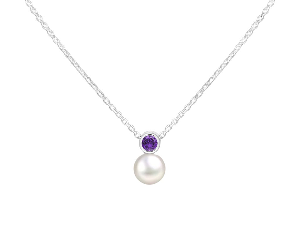 Stříbrný náhrdelník Birthstone s perličkou Únor - Ametyst Ag 925/1000