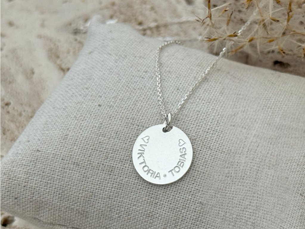 Stříbrný náhrdelník s medailonkem s gravírováním po obvodu medailonku, na který si můžeš nechat vygravírovat vlastní text. Text můžeš doplnit symboly, které budou na začátku a na konci gravírování. Vlož do medailonku jména/data svých nejbližších a měj je tak neustále u sebe. Jedinečný a osobní dárek pro tvou maminku, babičku, sestru i kamarádku.
