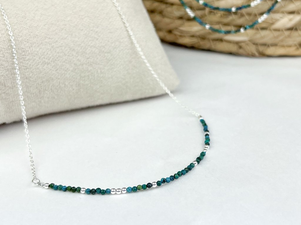 Stříbrný náhrdelník s kameny Chryzokolu.