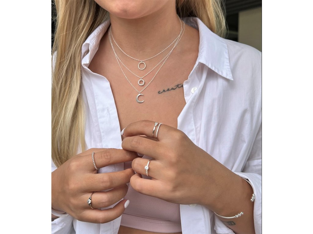Stříbrný náhrdelník s kulatým hladkým přívěskem kolečka.