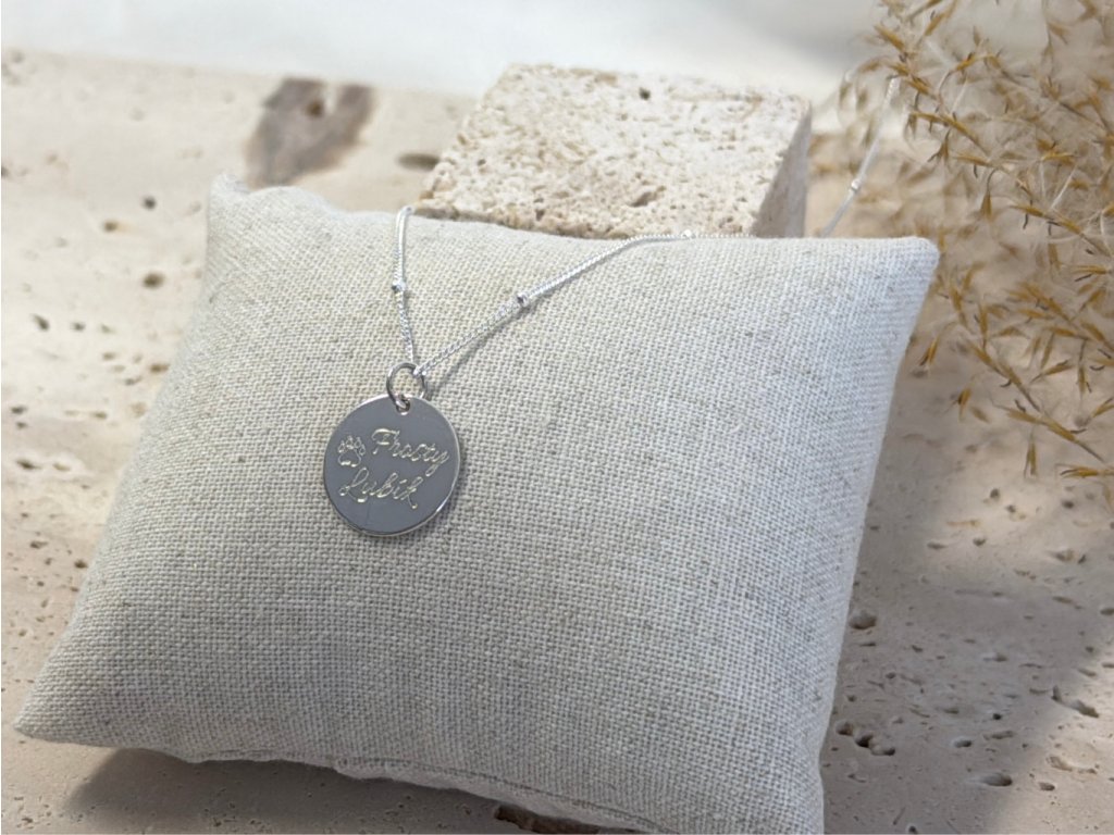 Stříbrný náhrdelník s medailonkem s gravírováním, na který si můžeš nechat vygravírovat vlastní text. Text můžeš doplnit symboly. Vlož do medailonku jména/data svých nejbližších a měj je tak neustále u sebe. Jedinečný a osobní dárek pro tvou maminku, babičku, sestru i kamarádku.