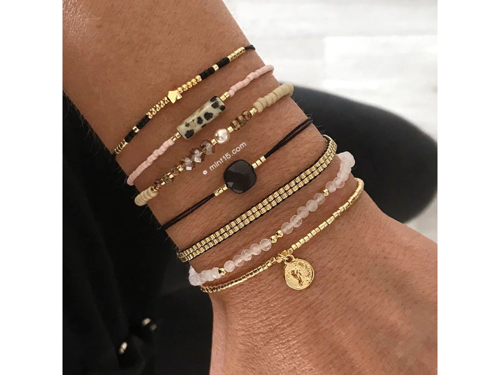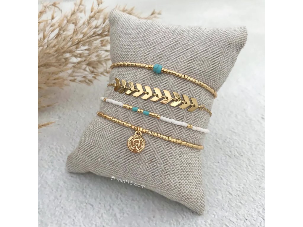 - Okouzlující náramek z pozlacených korálků Miyuki a medailonku uprostřed (7mm). Ideální ke kombinaci s dalšími náramky Mint15.