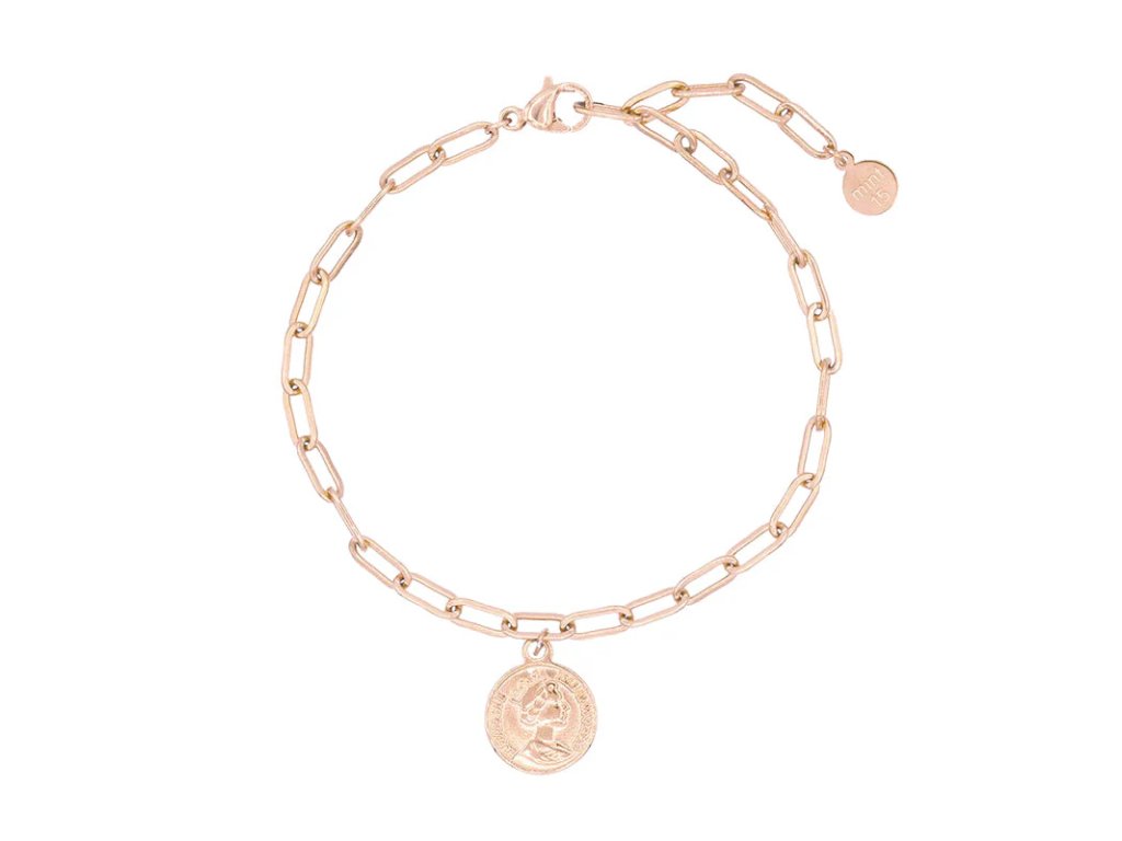 Elegantní nadčasový náramek z pozlacené chirurgické oceli ozdobený výrazným medailonkem. Ideální ke kombinaci s dalšími náramky Mint15.