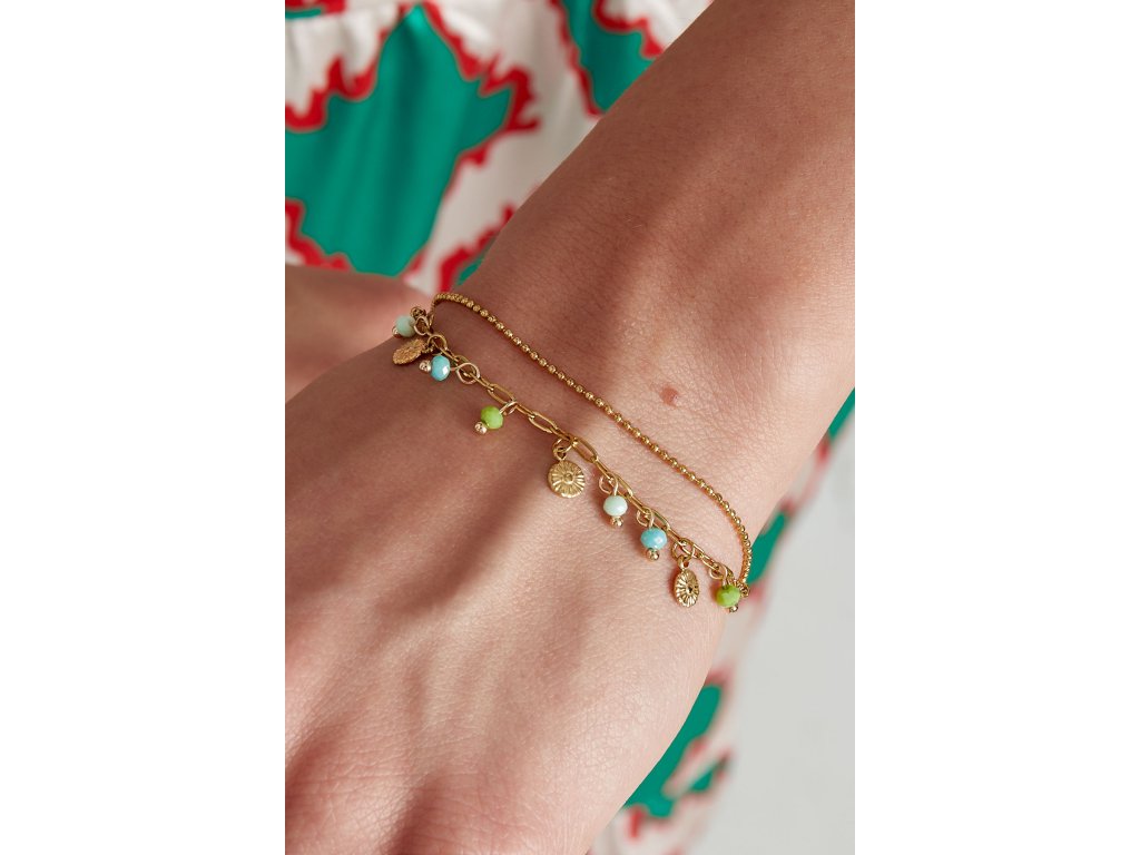 Krásný dvojitý náramek GIGI je ideálním doplňkem. Náramek je zdobený barevnými skleněnými korálky, které krásně zpestří a doladí tvůj outfit. Délka náramku je nastavitelná 16 + 3 cm.