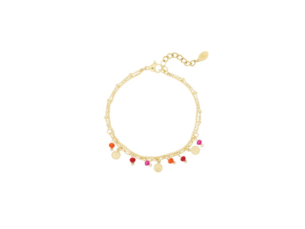 - Náramek je zdobený barevnými skleněnými korálky, které krásně zpestří a doladí tvůj outfit.