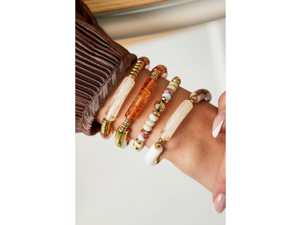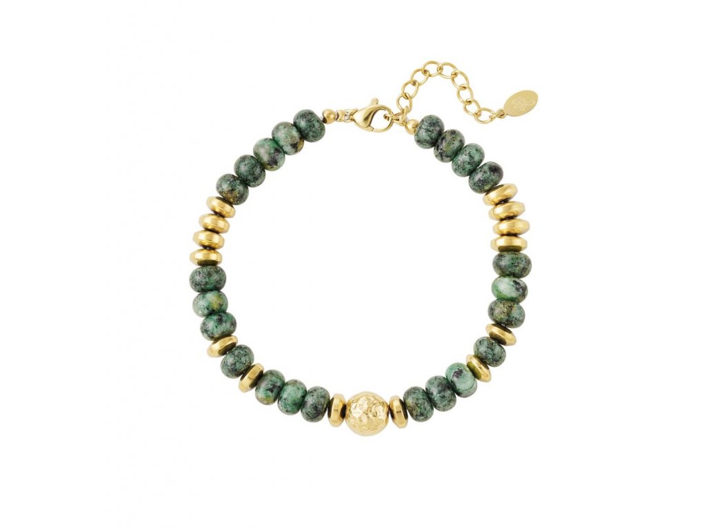Nádherný náramek z pozlacené chirurgické oceli s přírodními kameny Amazonitu v zelených tónech.