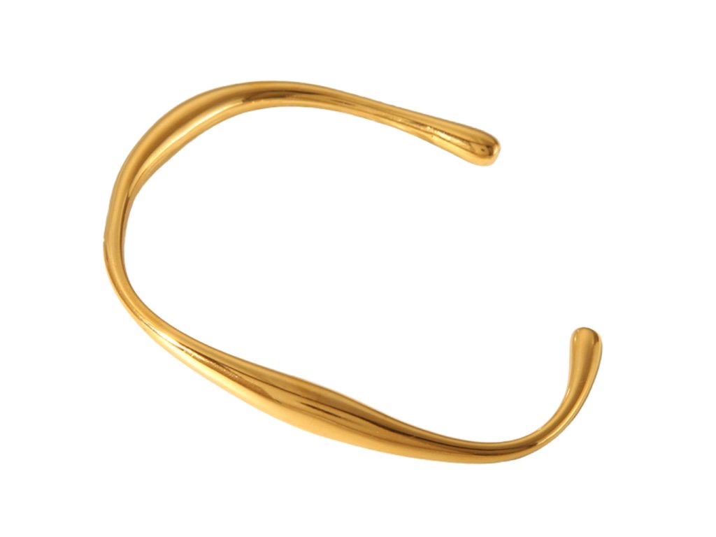 Elegantní pevný náramek VERA Gold. Stylový šperk s originálním tvarem a designem. Pevné náramky patří mezi výraznější šperky, které lze skvěle kombinovat s dalšími, jemnějšími náramky. Jestli chceš zazářit, s tímto náramkem se ti to rozhodně podaří!