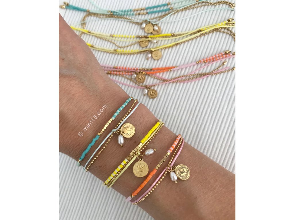 - 3 náramky v 1! Letní zářivé a jemné barvy dohromady, roztomilá malá mince a sladkovodní perla.