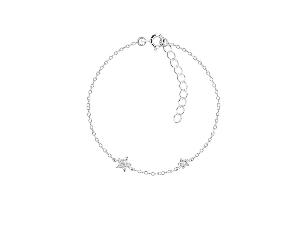 - Tento velmi decentní stříbrný náramek je zdobený HVĚZDY se třpytivými Zirkony.