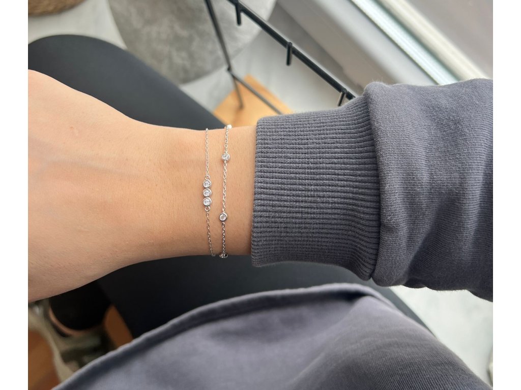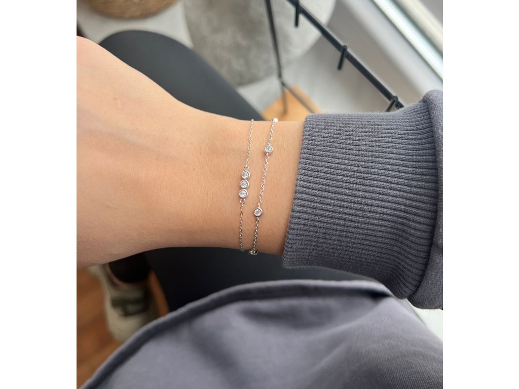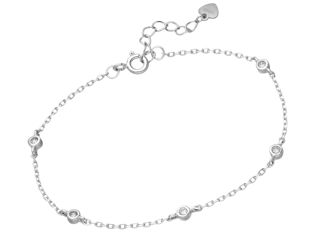 Elegantní rhodiovaný stříbrný náramek zdobený pěti kubickými zirkony o průměru 3 mm, který díky svému nadčasovému designu dokonale doplní každý outfit. Náramek má nastavitelný prodlužující řetízek pro pohodlné nošení a rhodiová úprava zajišťuje dlouhodobý lesk a ochranu proti oxidaci.