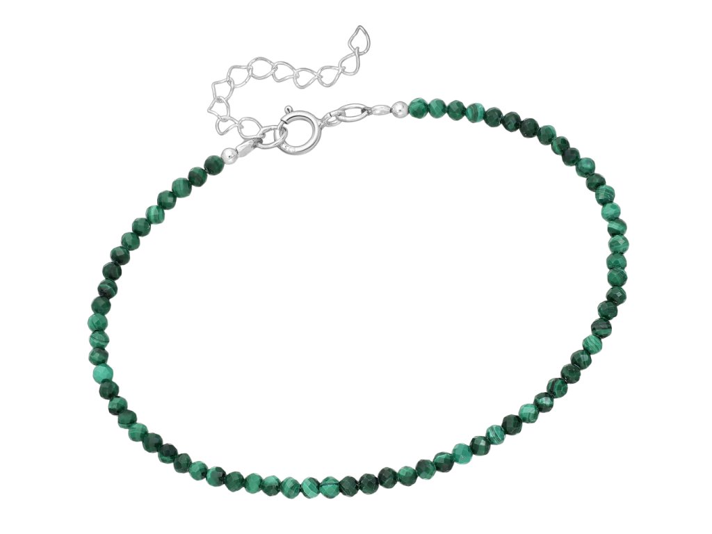 Ozdob své zápěstí tímto krásným náramkem s drobnými kamínky Malachitu. Tento šperk zpestří tvůj každodenní outfit, ale využít jej můžeš také jako elegantní doplněk na jakoukoliv společenskou akci či událost. Malachit je zvláště vhodný pro Štíry, Kozorohy a Vodnáře. Náramek má nastavitelnou délku 16,5 - 19 cm.