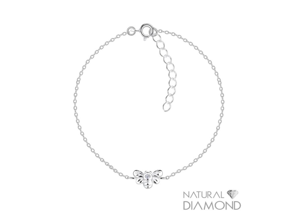 Stříbrný náramek VČELKA s diamantem Ag 925/1000