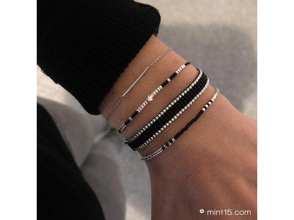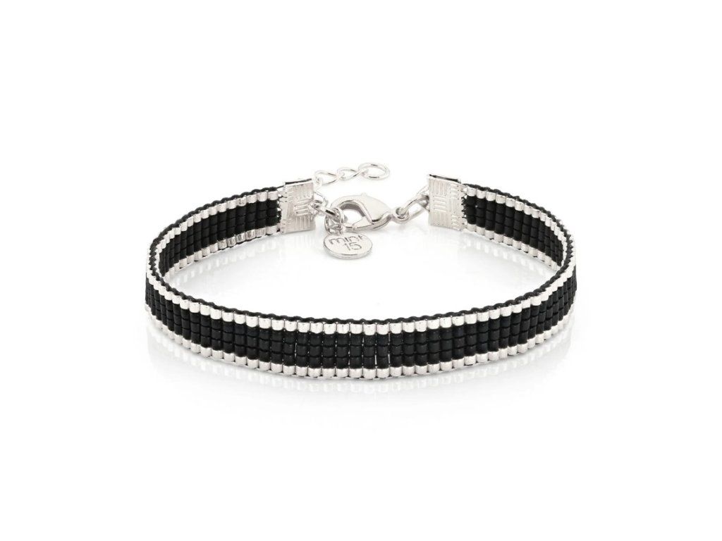 Tkaný Miyuki náramek Simplicity Black Silver
