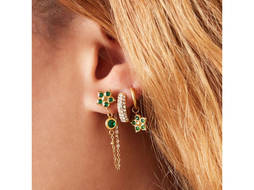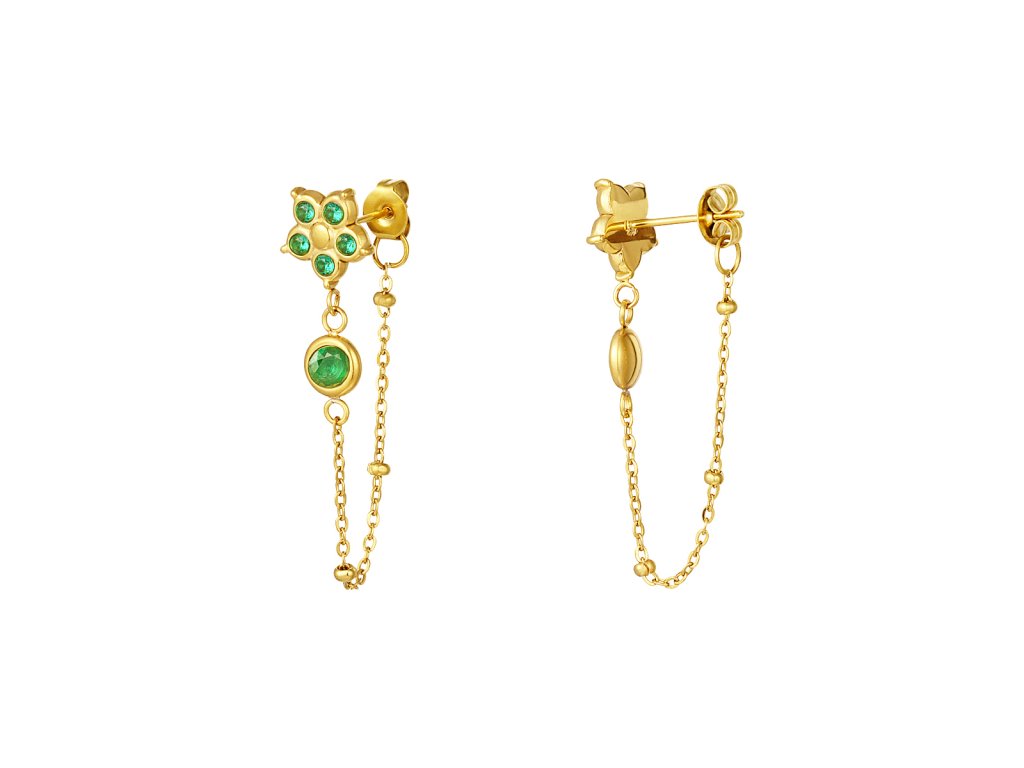 Náušnice BIBI Chain se zavěšeným řetízkem, kamínkem kubického Zirkonu a květinkou.