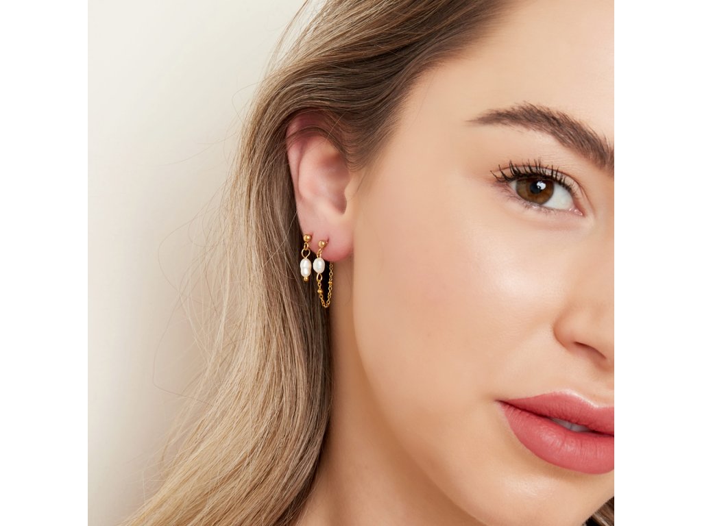 Pozlacené řetízkové náušnice z chirurgické oceli s perličkou.