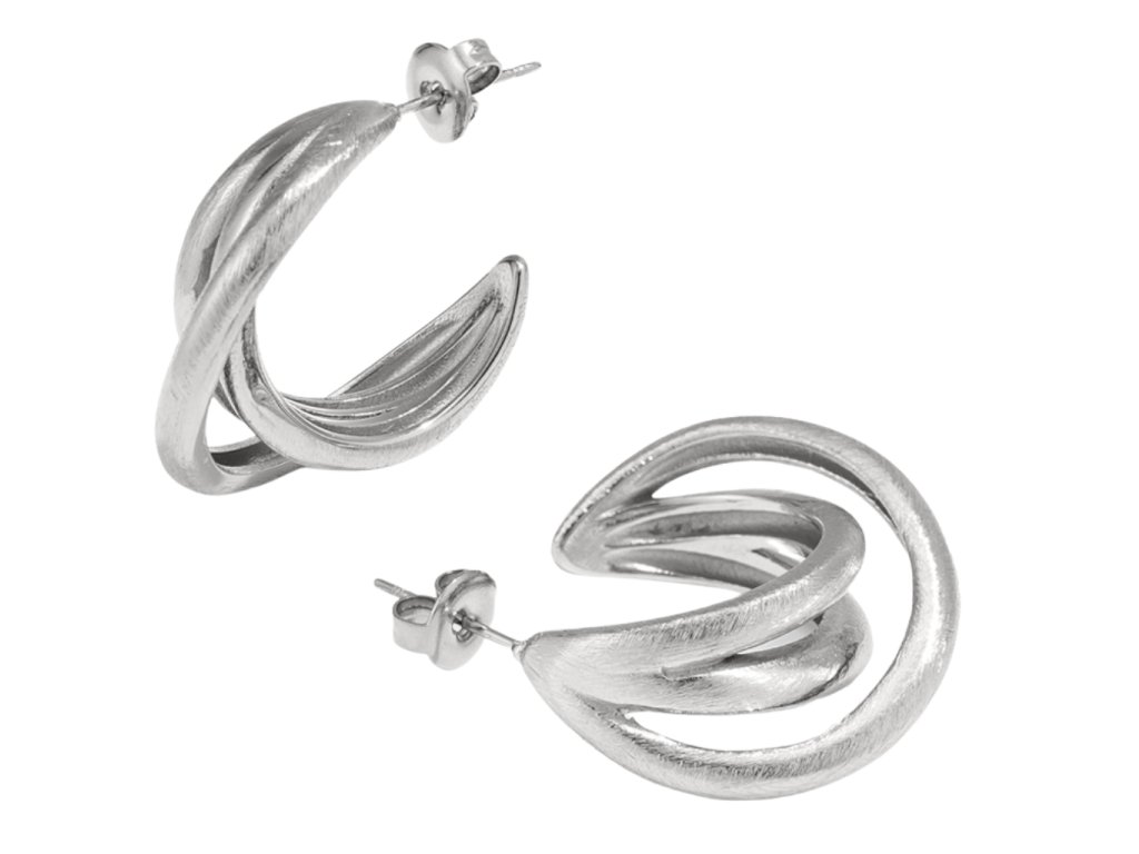 Tyto výrazné náušnice kruhy ANYA jsou nadčasový kousek, který doladí jakýkoliv outfit. Kruhy v moderním trojitém provedení působí elegantně a rozhodně zaujmou na první pohled. Využít je lze na jakoukoliv společenskou akci či událost. Skvěle kombinovatelné s ostatními šperky.