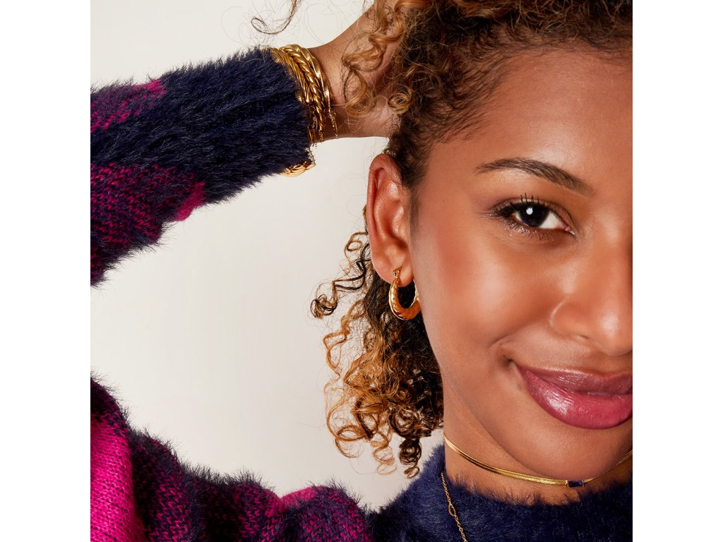 Náušnice Baguette z pozlacené chirurgické oceli skvěle doplní tvůj outfit do práce nebo do školy.