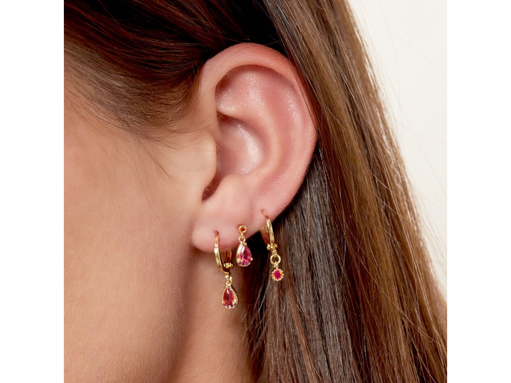 Pozlacené náušnice kruhy s přívěskem modrého Zirkonu.