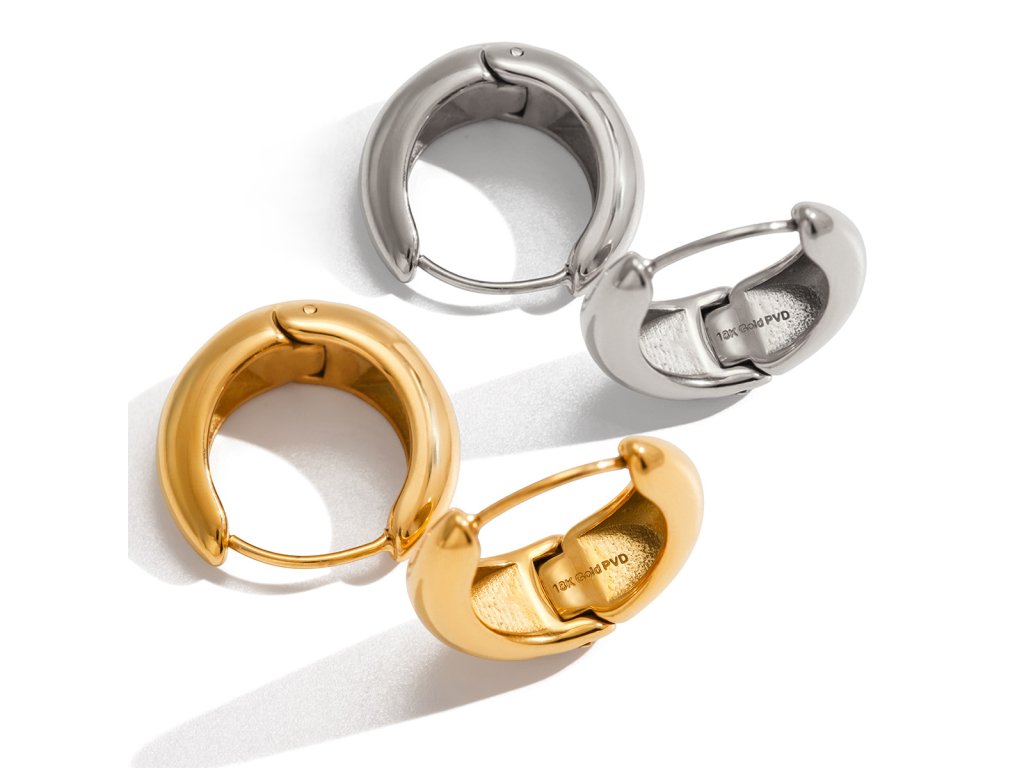 Výrazné náušnice kruhy GRACE z pozlacené chirurgické oceli dodají tvému outfitu ten správný šmrnc! Jsou ideální pro každodenní nošení i speciální příležitosti - a to ve dne i v noci, navíc se skvěle kombinují s dalšími šperky. Vykouzli těmito náušnicemi úsměv na tváři sobě či své blízké osobě.