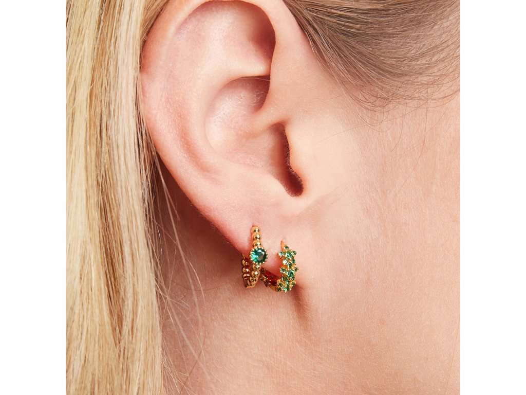 Kroužky MONARCH z obecného kovu o průměru 12 mm osázené třpytivými barevnými kamínky kubického Zirkonu.