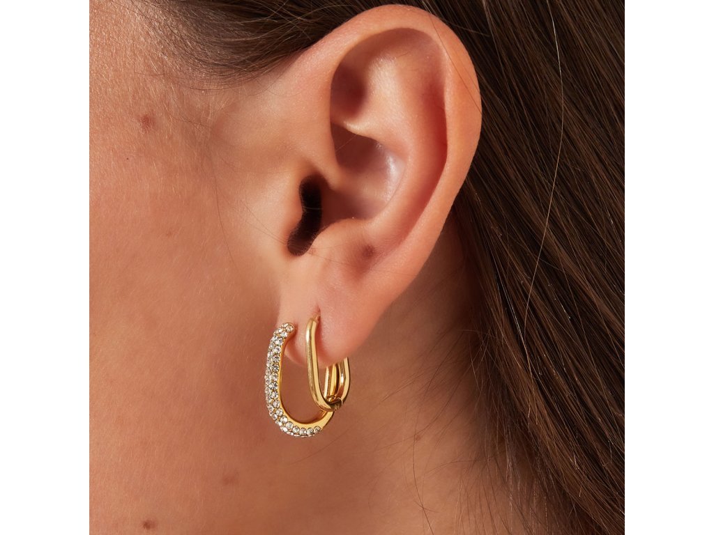 Oválné náušnice z pozlacené chirurgické oceli osázené kubickými zirkony.
