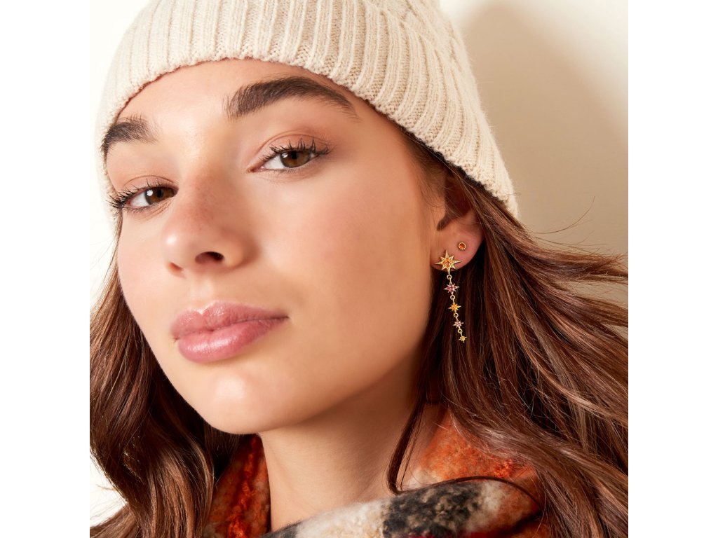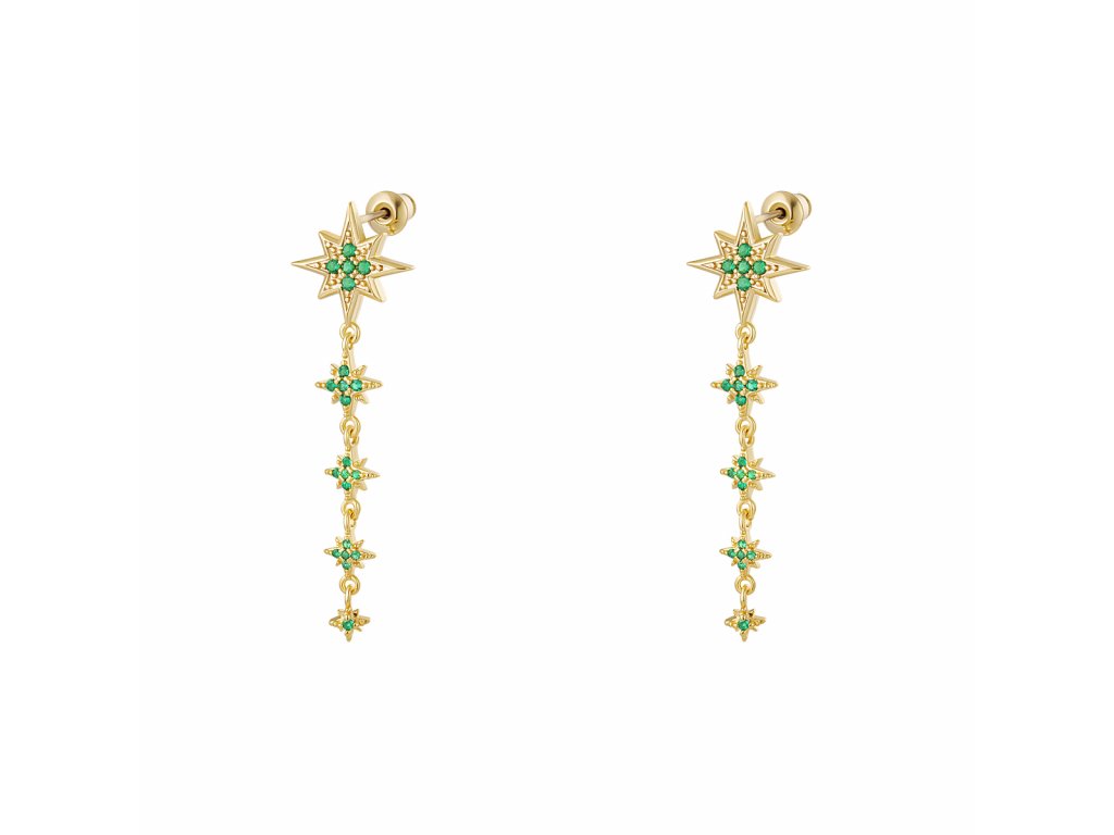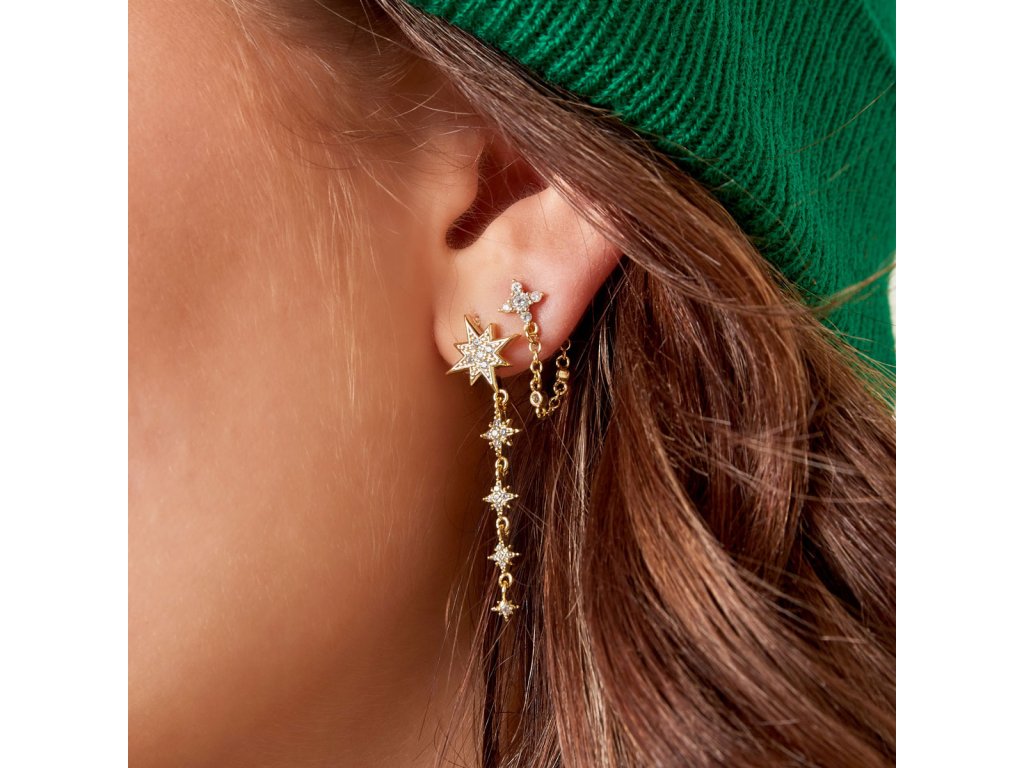Náušnice STARS s pěti hvězdičkami v různých velikostech. Náušnice jsou vyrobeny z pozlaceného kovu a jsou zdobené kubickými Zirkony.