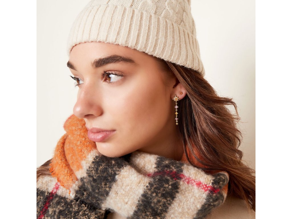Náušnice STARS s pěti hvězdičkami v různých velikostech. Náušnice jsou vyrobeny z pozlaceného kovu a jsou zdobené kubickými Zirkony.