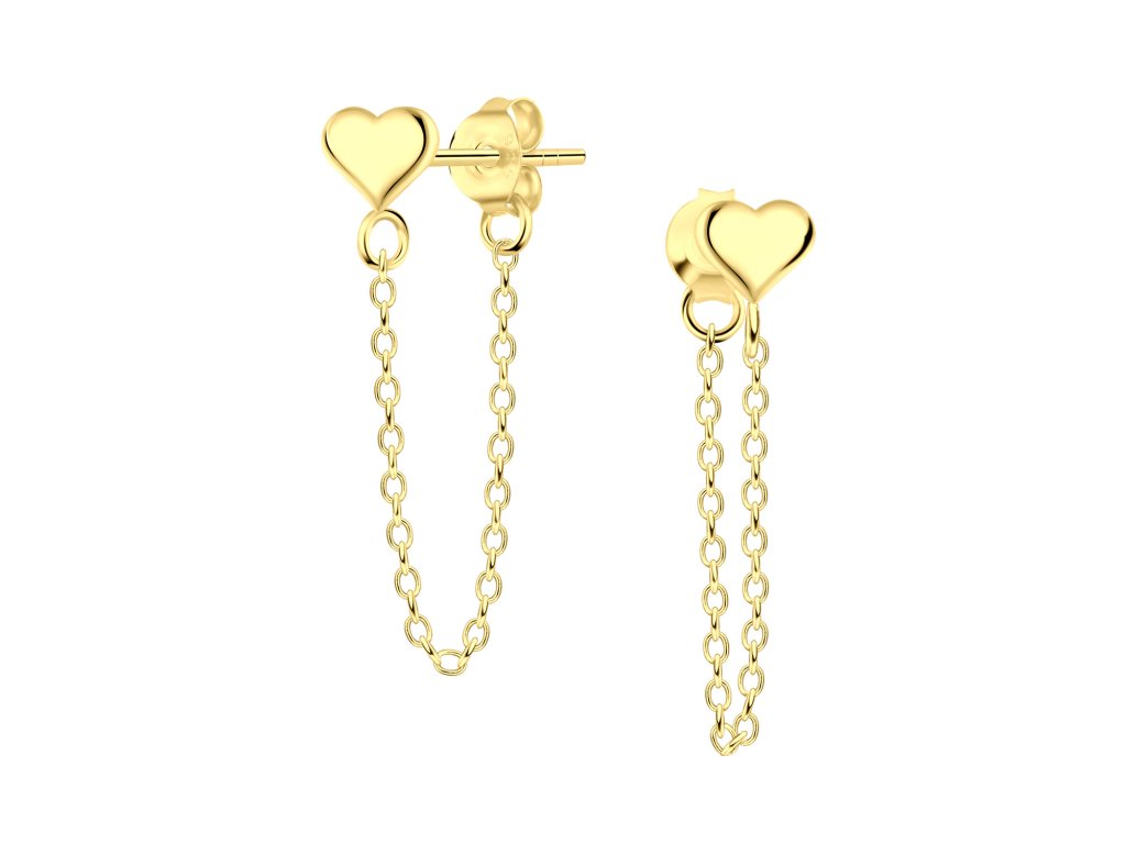 Pozlacené náušnice Chain Heart Ag 925/1000