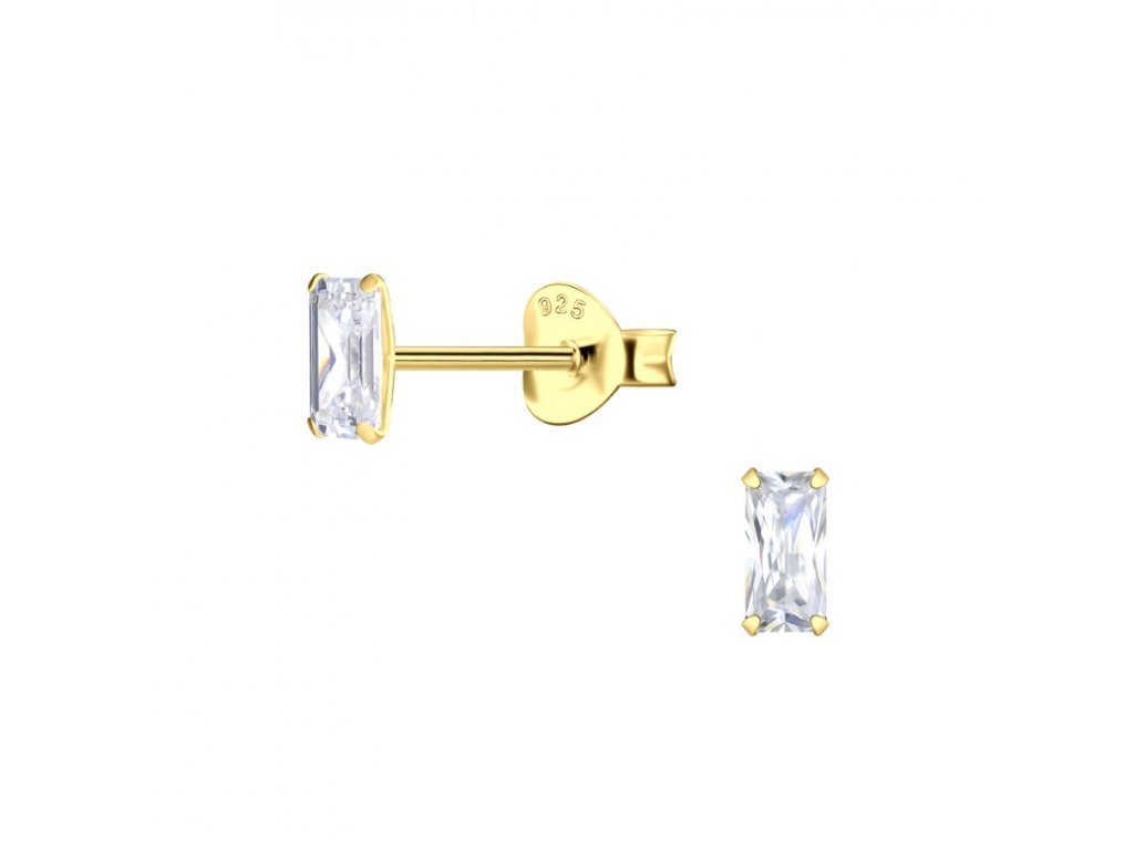 Pozlacené náušnice Rectangle se Zirkonem Ag 925/1000