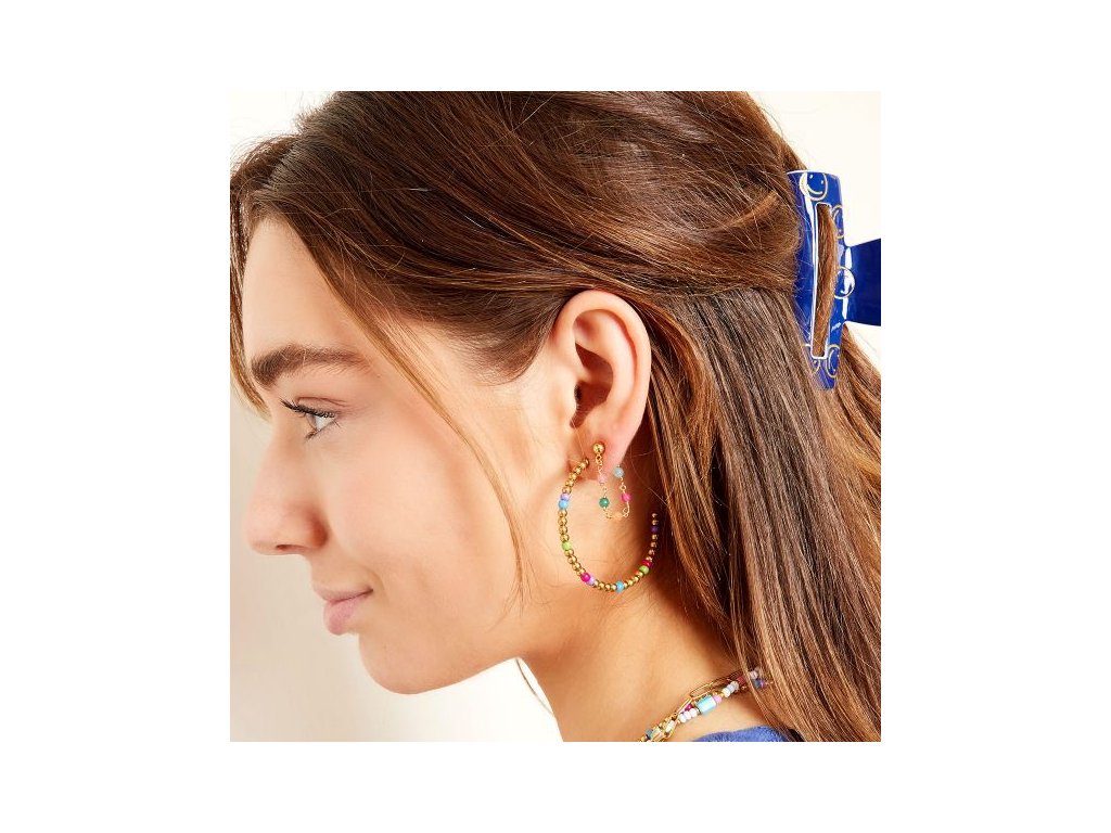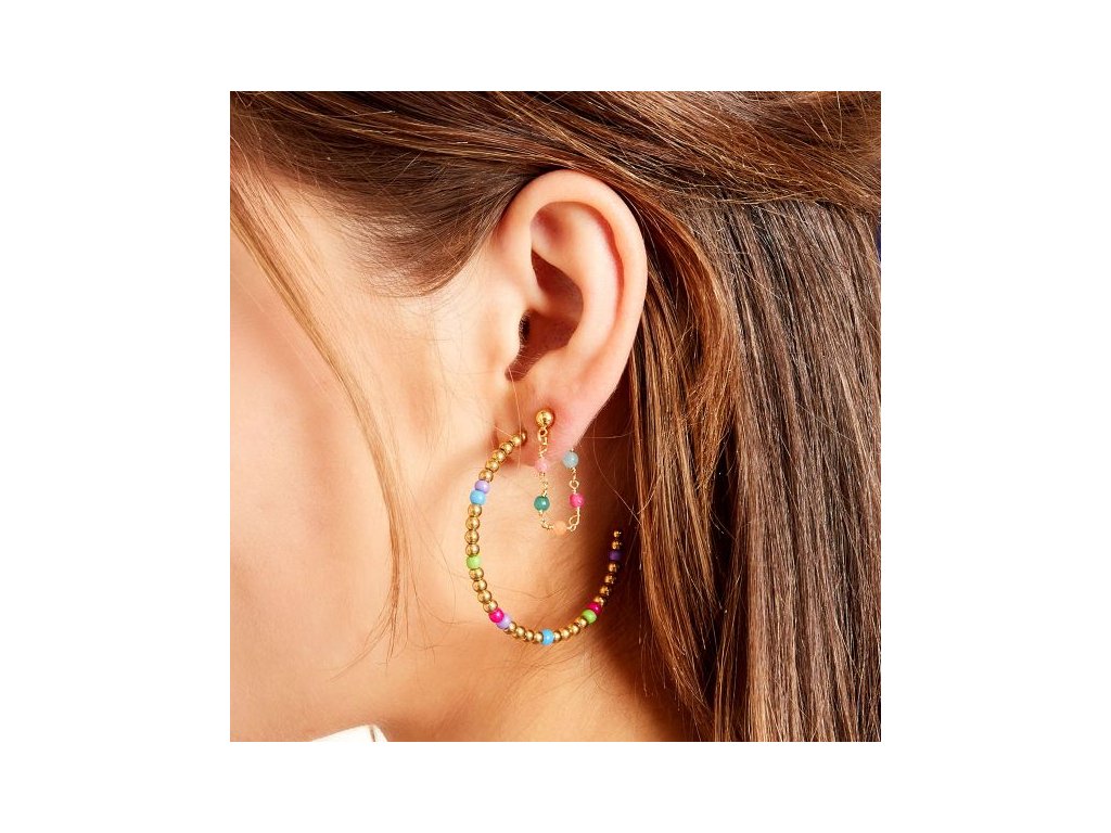 Řetízkové náušnice z pozlaceného obecného kovu s barevnými korálky.