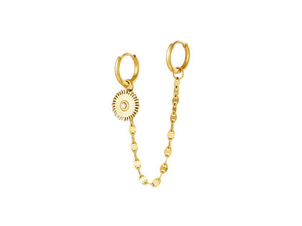 Single náušnice COLETTE z pozlacené chirurgické oceli s přívěskem, který je ozdobený perličkou.