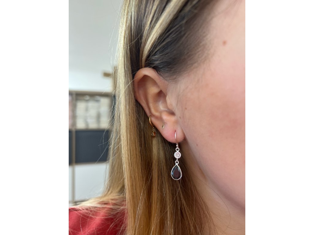 Stříbrné náušnice Black Tear Ag 925/1000